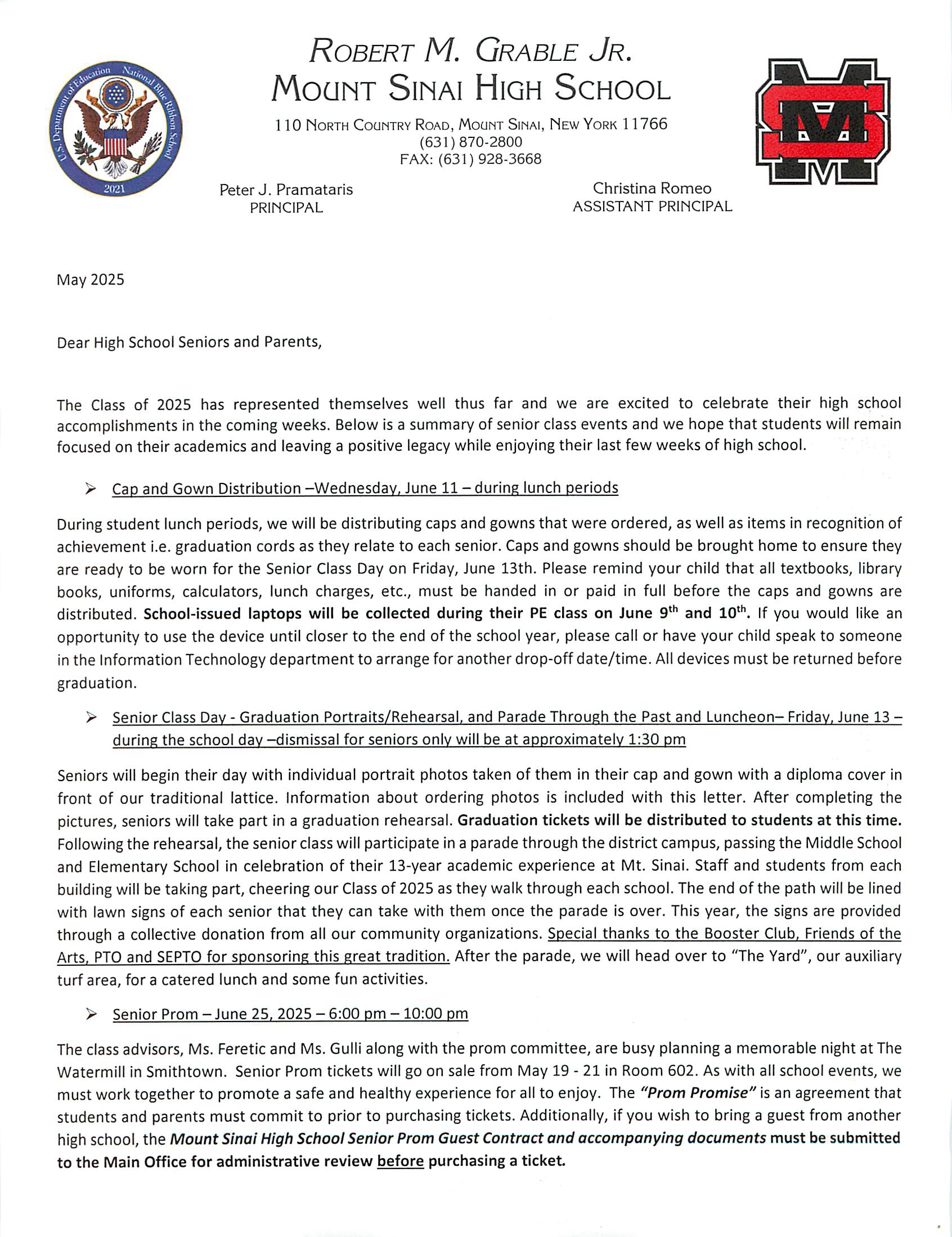 Class of 2025 End of Year Items - reminders for prom and graduation