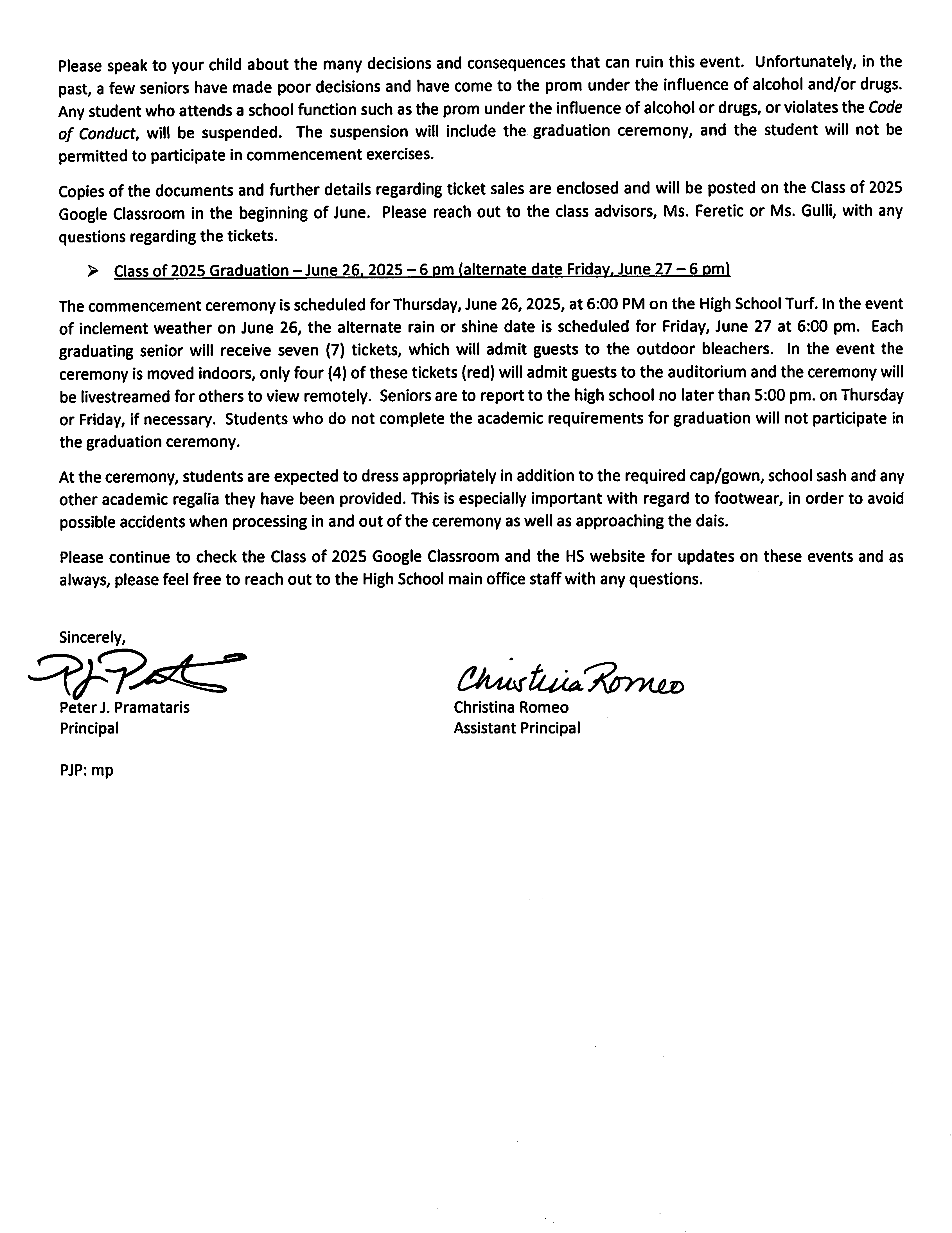 All updates to this info will be sent by our text alert system. Congrats to the Class of 2025!